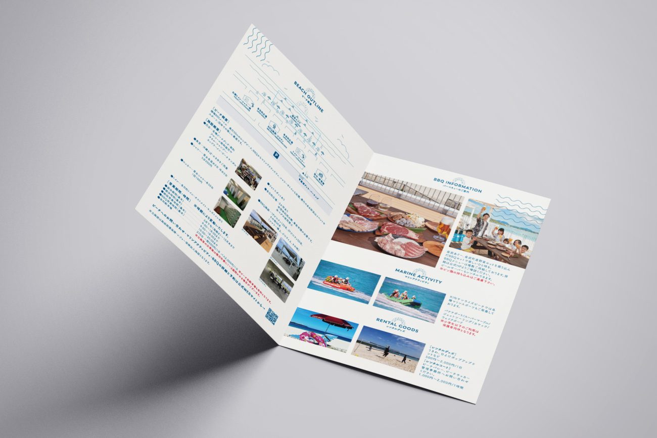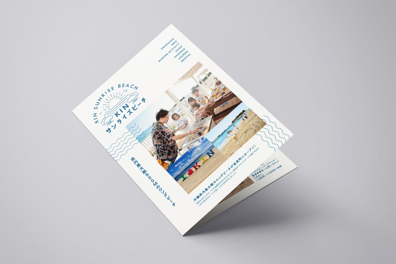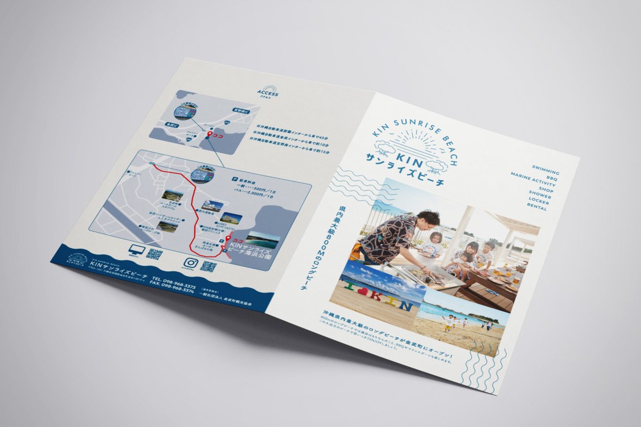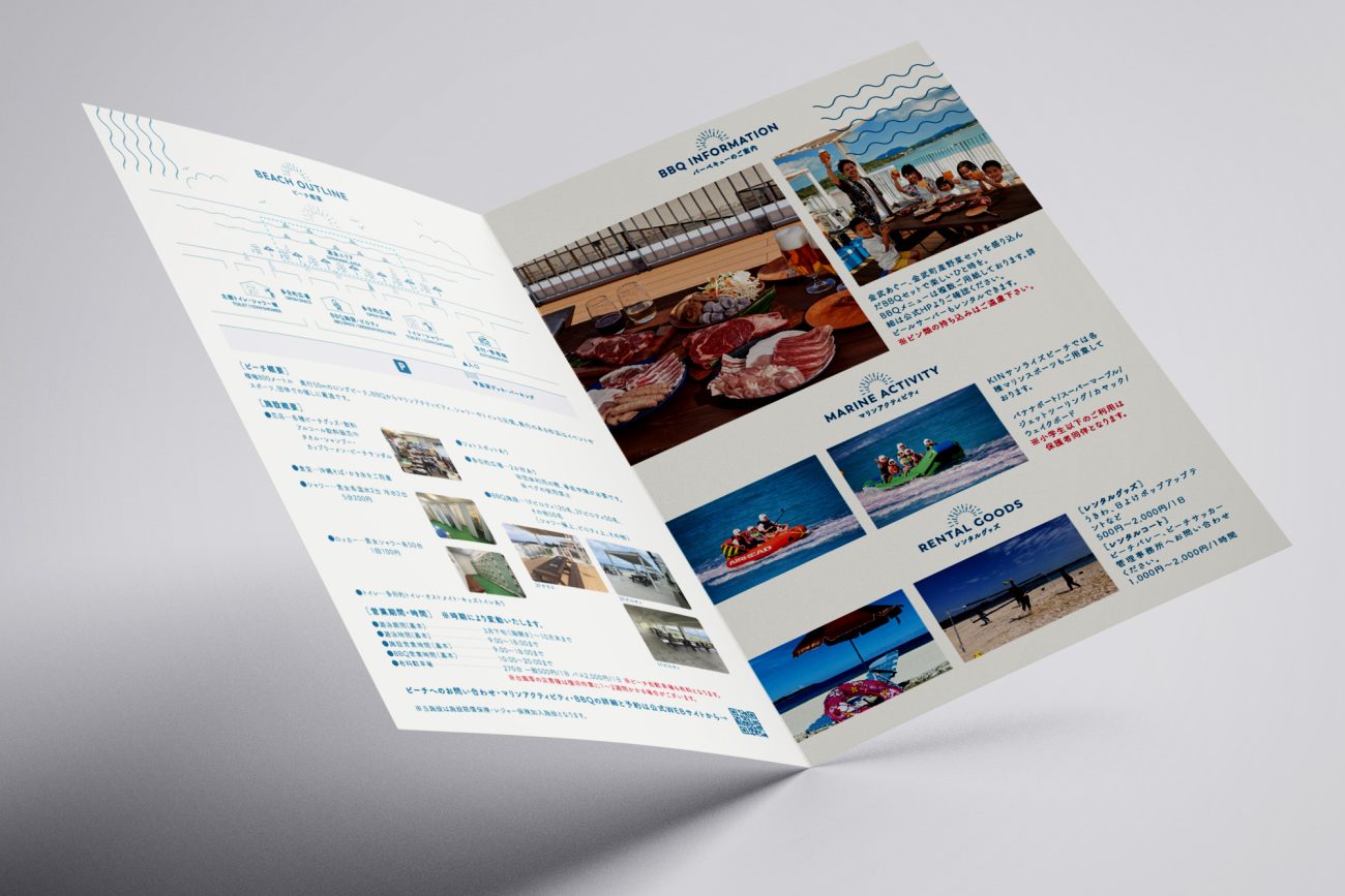 県内最大級800メートルのロングビーチ「KINサンライズビーチ」の施設案内パンフレット制作のご依頼をいただきました。