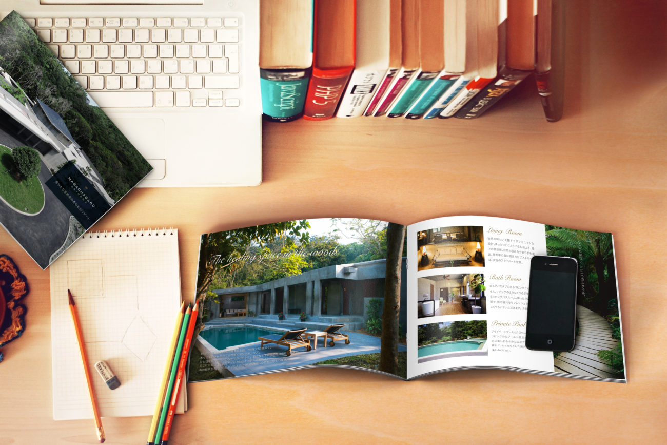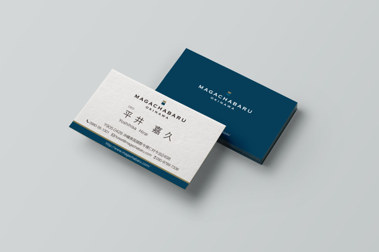 沖縄県今帰仁村の山の中に佇むヴィラMAGACHABARU OKINAWAさまのロゴデザイン、名刺デザイン、リーフレットデザイン、サインデザインを担当いたしました。