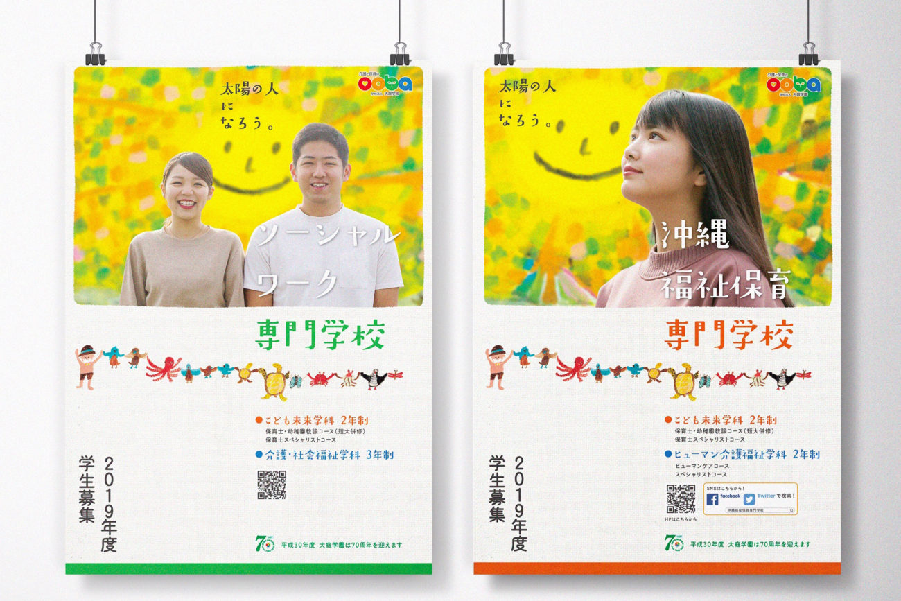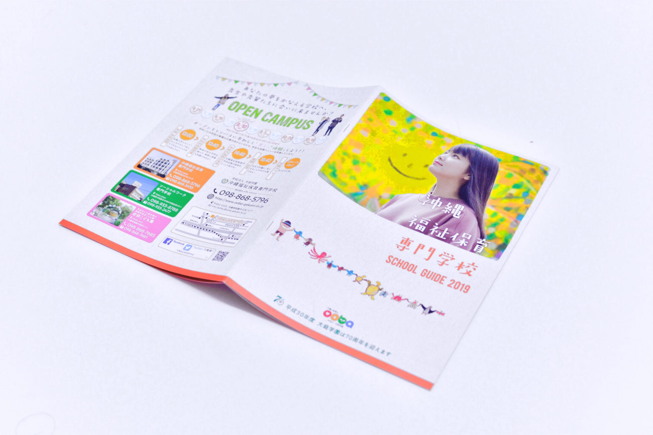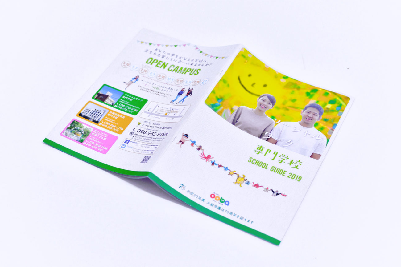 大葉学園グループ:ソーシャルワーク専門学校と沖縄福祉保育専門学校の学校案内パンフレットのデザインを担当いたしました。