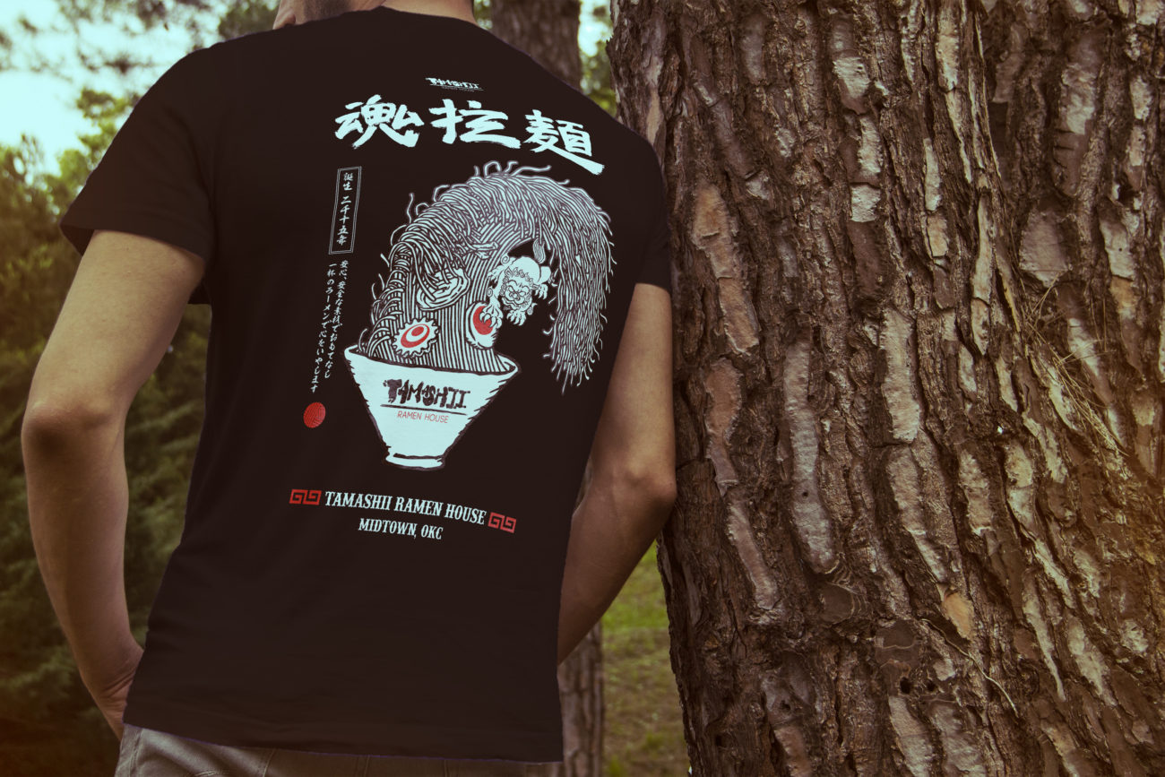 アメリカオクラホマ市の人気ラーメン店「TAMASHII RAMEN」さまより販売用のTシャツのデザインのご依頼をいただきました。