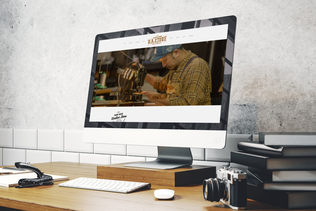 沖縄県北谷町美浜のデポアイランド内にあるレザー専門ショップU.A.STOREさまよりロゴデザインとWEBサイト制作のご依頼をいただきました。