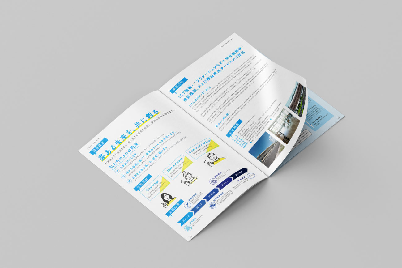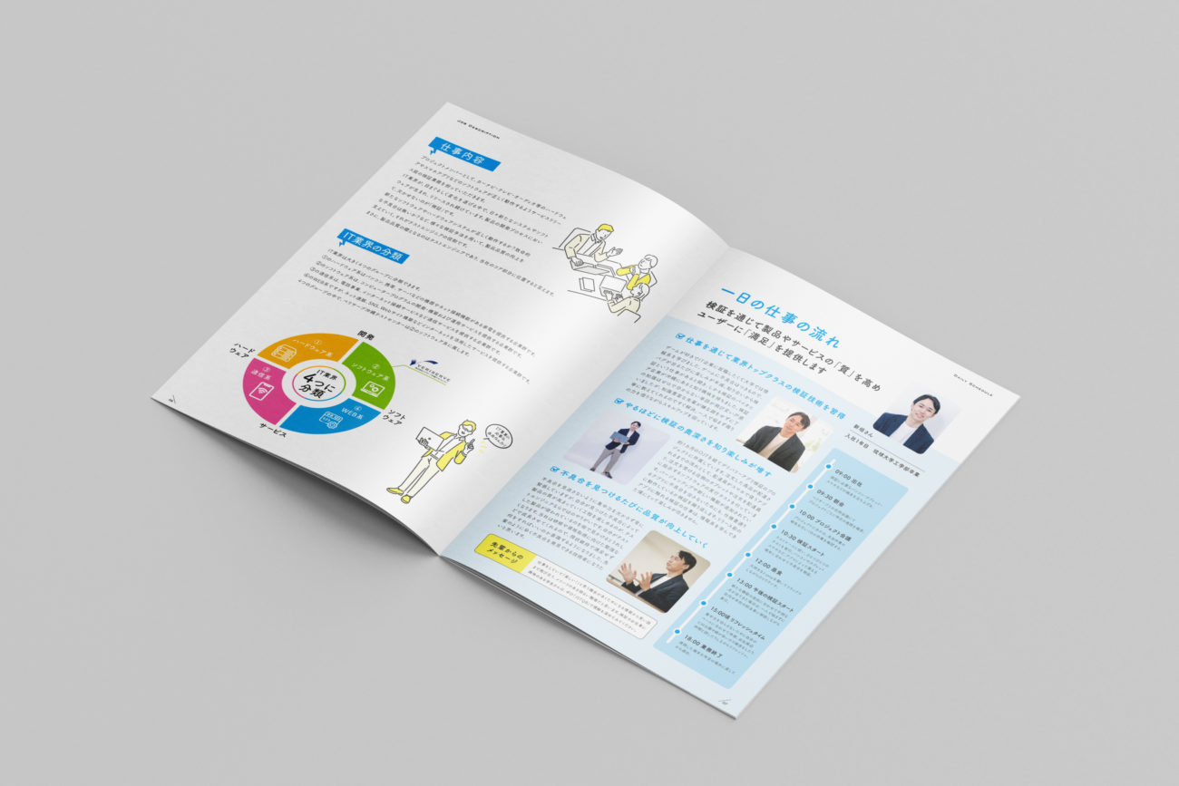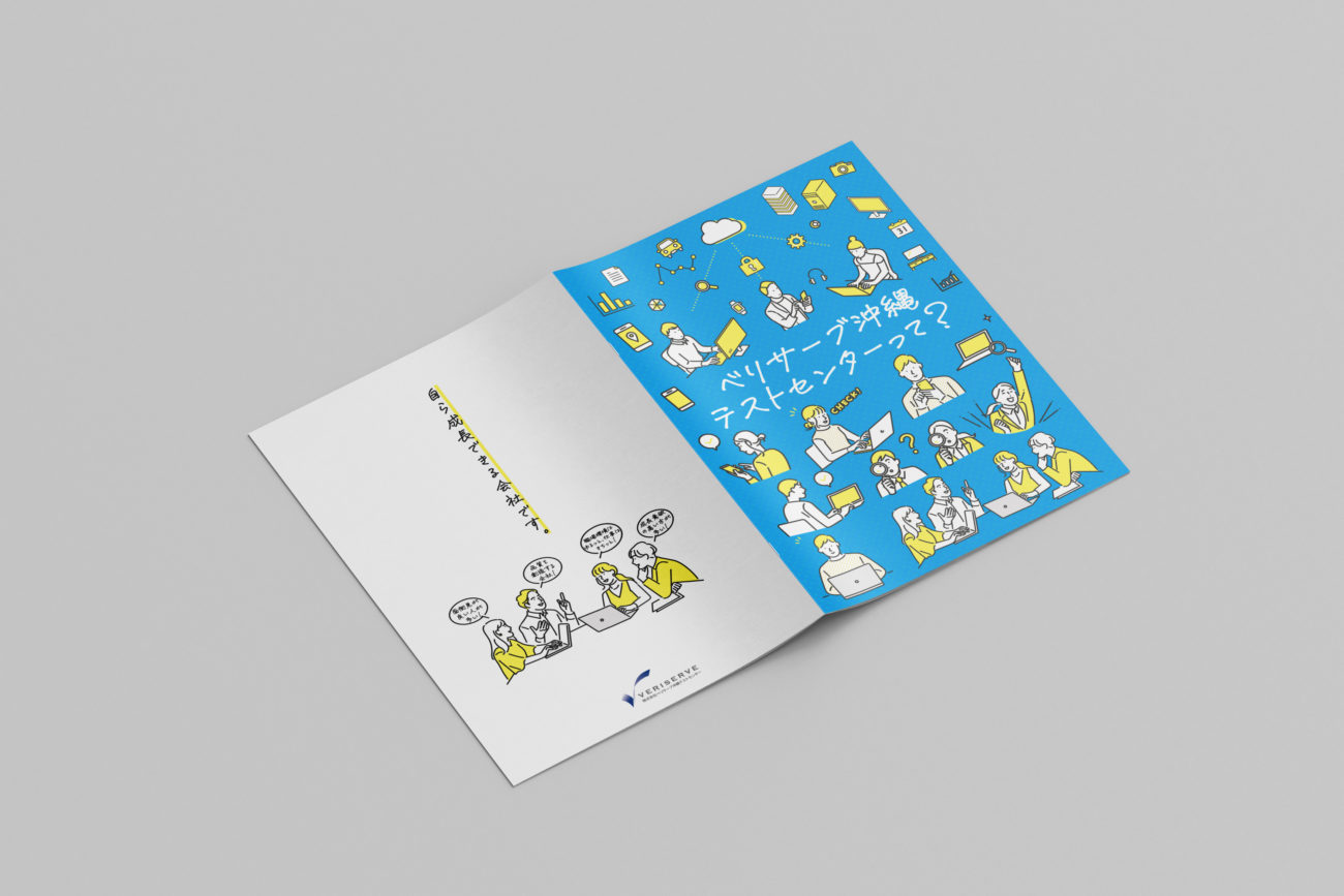 ソフトウェア検証という業務が特徴のベリサーブ沖縄テストセンター様の仕事内容を、イラストやインフォグラフィックを混じえながら学生向けに「ソフトウェア検証業務」に興味を持ってもらえるようなパンフレットを目指しました。